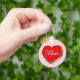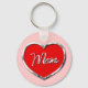 Diese Schlüsselkette zeigt ein graviertes, farbiges Herz mit dem Wort "Mama" in der Mitte.
