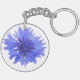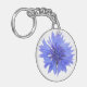 Schlüsselkette mit Single blauer Kornblume-Design vor weißem Hintergrund - nahe bis Fotografie