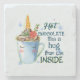 Ein skurriler und herzzerwärmender Untersetzer mit einem niedlichen Einhorn, der eine gemütliche Tasse heiße Schokolade genießt, umgeben von Schneeflocken und festlichen Wintervibes, gepaart mit dem süßen Satz "Hot Chocolate Like a Hug from the Inside". Ideal für Einhornliebhaber, heiße Kakaofans und alle, die das warme und zauberhafte Gefühl des Winters Lieben.