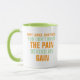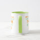 SCHMERZEN UND ERWERBEN Orange und Grüner Text auf Tasse