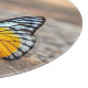 Gelbe Schmetterling sitzt bei Sonnenaufgang am Strand
