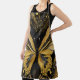 Heller, goldgelber Schmetterling auf schwarzem Hintergrund mit stilvollen Wirbel verziertes Design.