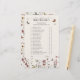 Fügen Sie eine Touch von Launen und Spaß zu Ihrem Brautparty mit unserem Schmetterling Er sagte, sie sagte Wildblume Duschspiel. Dieses charmante Spiel bietet zarte Aquarellbilder von Wildblumen und Schmetterlingen, die ein schönes und einladendes Design schaffen. Die sanften, rustikalen Farben und die komplexen Details erinnern an Romantik und natürliche Schönheit und machen es zu einer perfekten Ergänzung zu jedem Brautparty. Das Spiel lädt die Gäste ein, zu erraten, wer was gesagt hat - die Braut oder der Bräutigam - auf der Grundlage einer Reihe amüsanter und herzlicher Aussagen. Es ist eine wunderbare Art, Ihre Gäste zu begeistern und die Liebe des glücklichen Paares zu feiern. Mit seinem bezaubernden Design und seiner spielerischen Natur wird dieses Spiel ein unvergesslicher Höhepunkt Ihrer Brautparty-Festlichkeiten sein. Kontaktieren Sie Designer für passende Produkte. Sammlung hier sehen: https://www.zazzle.com/collections/119501268573504151 Copyright Anastasia Surridge, alle Rechte vorbehalten.