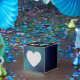 Fantastisch, leuchtend, blau und gelb, Nachtschmetterling auf dunklem Hintergrund.