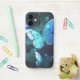 Fantastisch, leuchtend, blau und gelb, Nachtschmetterling auf dunklem Hintergrund.