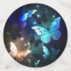Fantastisch, leuchtend, blau und gelb, Nachtschmetterling auf dunklem Hintergrund.
