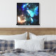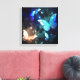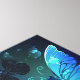 Fantastisch, leuchtend, blau und gelb, Nachtschmetterling auf dunklem Hintergrund.