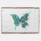 Künstlich gezeichnet, fiktionaler, grüner, detailreicher Schmetterling mit grünen, schönen Pfauenfedern auf weißem Hintergrund.