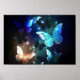 Fantastisch, leuchtend, blau und gelb, Nachtschmetterling auf dunklem Hintergrund.