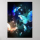 Fantastisch, leuchtend, blau und gelb, Nachtschmetterling auf dunklem Hintergrund.