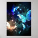Fantastisch, leuchtend, blau und gelb, Nachtschmetterling auf dunklem Hintergrund.