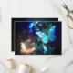 Fantastisch, leuchtend, blau und gelb, Nachtschmetterling auf dunklem Hintergrund.