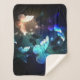 Fantastisch, leuchtend, blau und gelb, Nachtschmetterling auf dunklem Hintergrund.
