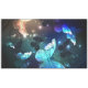 Fantastisch, leuchtend, blau und gelb, Nachtschmetterling auf dunklem Hintergrund.