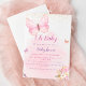 Bewundern Sie die Ankunft Ihres kleinen Hauses mit diesem bezaubernden Schmetterling und der blumengeschmückten lila und rosa Babydusche. Dieses elegante Design mit zarten, pastellfarbenen Schmetterlingen, die inmitten sanfter, blühender Blume flattern, Set für ein zauberhaftes und fröhliches Fest.