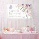 Ein Leben lang Schmetterlinge Horizontales Banner für die Brautparty. Verleihen Sie Ihrer Brautparty mit diesem charmanten horizontalen Banner einen Hauch von zauberhafter Romantik, perfekt für eine "Ein Leben lang Schmetterlinge"-thematisierte Feier. Die Kunstwerke zeigen eine zarte Mischung aus Wasserfarben-Wildblumen und Grünzeug, mit mehreren rosa und violetten Schmetterlingen, die über das Layout flattern. Die Farbpalette umfasst Rosenholz-Rosa, Staubrose, Lilac, Lavendel, Violett und frische Grüntöne für einen weichen, garteninspirierten Look.