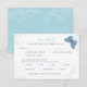 Schöne grafische Schmetterlinge und floralblühende RSVP-Hochzeitskarte in dunkelblau, Elfenbeincreme, helles Himmelblau, Korallenrosa auf Weiß auf der Innenseite und hellblau auf der anderen Seite. Persönlich gestalten Sie Ihre Hochzeitseinladungen mit Ihren eigenen gastronomischen Angeboten. Original zeichn und Design von Sarah Trett für www.mylittleeden.com