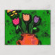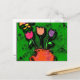 Grüner Hintergrund mit farbenfrohen Blume und einem Schmetterling, der über den Kopf schwebt. Schöne digitale Illustration. Freuen Sie sich auf ein cooles, farbenfrohes Design. Eine hübsche Postkarte mit einem lustigen Gefühl. Für diese stilvolle Postkarte stehen passende Briefmarke zur Verfügung.