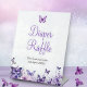 Mit unserem Butterfly Baby Shower Diaper Raffle Ticket Pedestal Sign erweitern Sie Ihre Windelverlosungsstation. Dieses Schild mit einem prächtigen lila Schmetterling in einem lila Blumengarten verleiht Ihrem Baby-Duschdekor eine elegante Touch, während Sie die Gäste zum Vergnügen führen. Dieses Podestschild, das Teil der Lila Butterfly Baby Shower Collection ist, behalte Ihre Veranstaltung schön koordiniert und fügt dem Verlosungsbereich eine raffinierte Touch hinzu.