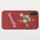 Großartiger roter XS Max Gehäuse mit goldfarbenen und weißen Blume und Wirbel. Sieht aus wie teures Schmuckdesign. Fügen Sie Ihren eigenen persönlichen Namen in reinem weißen Text hinzu. Andere iPhone-Gehäuse zur Verfügung.