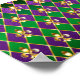 Schmuck, Hintergrund auf Mardi Gras von lila und grünen Rhombus, verzierte goldene Lilien.