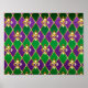 Schmuck, Hintergrund auf Mardi Gras von lila und grünen Rhombus, verzierte goldene Lilien.