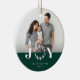 Ein Gedenkschmuck mit dem Foto des Kunden mit weißem Joy-Overlay und Farbblock-Bar am unteren Rand. Die Rückseite hat eine koordinierende Vollfarbe und einen Textbereich für zusätzliche Nachrichten.