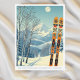 Hallo aus den schneebedeckten Bergen von Schmugglers Notch, Vermont, USA! Wir hoffen, dass Sie einen wunderschönen Skiurlaub haben. Diese Postkarte zeigt eine wunderschöne, blau-graue Berglandschaft mit Retro-Skischulen in orangefarbenem Stammesmuster. Alle Textsätze können an Ihren Anzug angepasst werden!