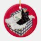 Un ornement adorable avec une illustration d'un Schnauzer a présenté à un nouveau propriétaire chanceux dans une boîte-cadeau.