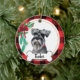 Schnauzer-Ornament mit rotem Büffelhintergrund und Weihnachtsgarland und Bogen - Kunst wurde von mir handgemalt und als dieses bezaubernde Ornament zur Verfügung gestellt! Fügen Sie einen Text hinzu (vorgeschlagen: "Ich ❤️ meinen Schnauzer" oder den Namen Ihres Süßes) besuchen Sie www.curella.net für ein individuelles Portrait, Aufkleber und vieles mehr.