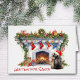 L'avant de cette carte de voeux de Noël a l'image d'un adorable chien Schnauzer Terrier portant un chapeau de Père Noël rouge et blanc. Le chien est assis devant une cheminée décorée, attendant le Père Noël. Le texte rouge en bas dit "En attendant Père Noël". Le texte est personnalisable, comme tout le texte intérieur, de sorte que vous pouvez le faire dire ce que vous voulez. Mignonne ! Voir d'autres images de terrier, ainsi que des dizaines d'autres produits de races de chiens, à Dog Village.