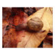 Eine große Schnecke überquert ein Bett aus Herbstblättern.