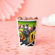Als Cartoon einer Schnecke, die auf der Seite seiner Muschel gemalt wurde, überquert er die Siegellinie auf einer Rennstrecke mit einem lächelnden glücklichen Gesicht.