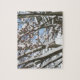 Wenn der Schnee fällt, schafft er eine wunderschöne Kunst wie die zarte Ansammlung an den Ästen eines reifen japanischen Ahornbaumes.