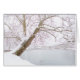 Schnee bedeckter Baum umfaßt Teich