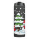 Schnee fällt auf Kardinal, Schneemann und Pine Tre Thermosbecher