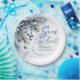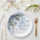 Schnee in der Liebe Winter Brautparty mit Monogramm Papier Teller Vorlage, Aquarellblau staubige Winterbeeren auf schneebedeckten Kiefernästen Schneeflocken personalisierte Papier-Teller, Winter Brautparty personalisierte Tischdekoration personalisierte Papier Teller, Winter Brautparty Party Lieferungen.