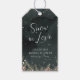 Vervollständigen Sie Ihre Winterhochzeits- oder Feiertagsgeschenke mit diesem Snow in Love-Geschenkanhänger. Das elegante Design zeigt Wasserfarben-Tannen, Schneeflocken und Pinienzapfen vor einem schwarzen Hintergrund für eine ausgeklügelte, winterliche Note. Ideal für Hochzeitsshower-Mitgebsel, Weihnachtsgeschenke oder saisonale Verpackungen, jeder Anhänger ist individuell anpassbar mit Namen, Daten oder Veranstaltungsdetails. Kombinieren Sie ihn mit passender Korrespondenz und Dekoration für eine stimmige Präsentation.