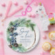 Schnee in der Liebe Winter Brautparty Vorlage Party Teller, Aquarellblau staubige Winterbeeren auf verschneiten Kiefernästen Schneeflocken moderne lässige Schriftart personalisierte Brautparty Geschirr maßgeschneiderte Teller