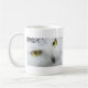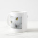 Schöne und geheimnisvolle Augen einer niedlichen Schneeeule. Nahes Foto der Schneeeule mit gelben Augen.