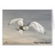 Eine digitale Darstellung einer Schneekugel (Bubo scandiacus) überlagert auf einem winterlichen, grauen Himmelshintergrund. Fügen Sie Ihren eigenen Text hinzu. Die bodennistende Snowy Owl ist in den arktischen Regionen Nordamerikas und Eurasiens endemisch. Männchen sind fast rein weiß, während Weibchen, wie in diesem Bild, mehr dunkle Flecken und Balken in ihrem Absturz haben.