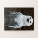 Snowy Owl - Das Portrait einer schneebedeckten Eule, die auf einem Baumstamm stehend ist. © Alan Harman Fotografy 2009. Alle Rechte vorbehalten. www.alanharmanphotography.com