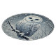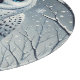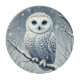 Schöne Schneeeule mit auffallend blauen Augen, die während des Schneefalls auf einem frostigen Baumarm gekrönt sind. Dieses atemberaubende Bild, das Ruhe und Winterwundern hervorruft, spiegelt das Wesen der Natur in den kalten Jahreszeiten wider.