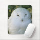 Schneeeule, große Eule der typischen Eule-Familie Strigidae, zwischen Steinen sitzend