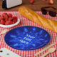Ein winterliches Thema mit einem Schwarm von Schneeflocken aus blauem Fraktal. Passen Sie Ihren eigenen Text an.