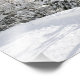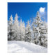 Schneeabdruck auf den Bäumen unter blauem Himmel in einem Skigebiet im Winter an einem sonnigen Wintertag.