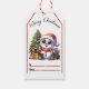 Ein schöner Weihnachtstag mit einem fröhlichen Schneemann neben einem schön geschmückten Baum, umgeben von farbenfrohen Geschenken, perfekt für Feiertagsgeschenke und Feierlichkeiten.