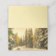 Eine Platzkarte mit einem wunderschönen Naturfoto. Ein abgeschiedener Winterweg mit hohen schneebedeckten Kiefern. Eine goldene Dämmerung schafft ein zauberhaftes Gefühl für dieses Foto.