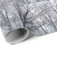 Schneebedeckte Äste füllen das Foto, was es fast zu einer Abstraktion macht. Im Vordergrund spaltet sich ein dunkler Eichenbaumstamm in viele Gliedmaßen, beginnend am unteren links des Rahmens und bis nach oben und nach rechts. Der nahe schwarze Kofferraum liefert ein grafisches Element für das Bild. Der Eichenbaum hat noch einige braune Blätter. Der Himmel im Hintergrund ist weiß. Eine chaotische und faszinierende Winterlandschaft. Digitales, Farbfoto. Copyright © Claire E. Skinner. Alle Rechte vorbehalten.