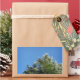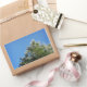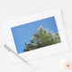 Schneebedeckter Kiefernbaum auf blauem Himmel Rechteckiger Aufkleber